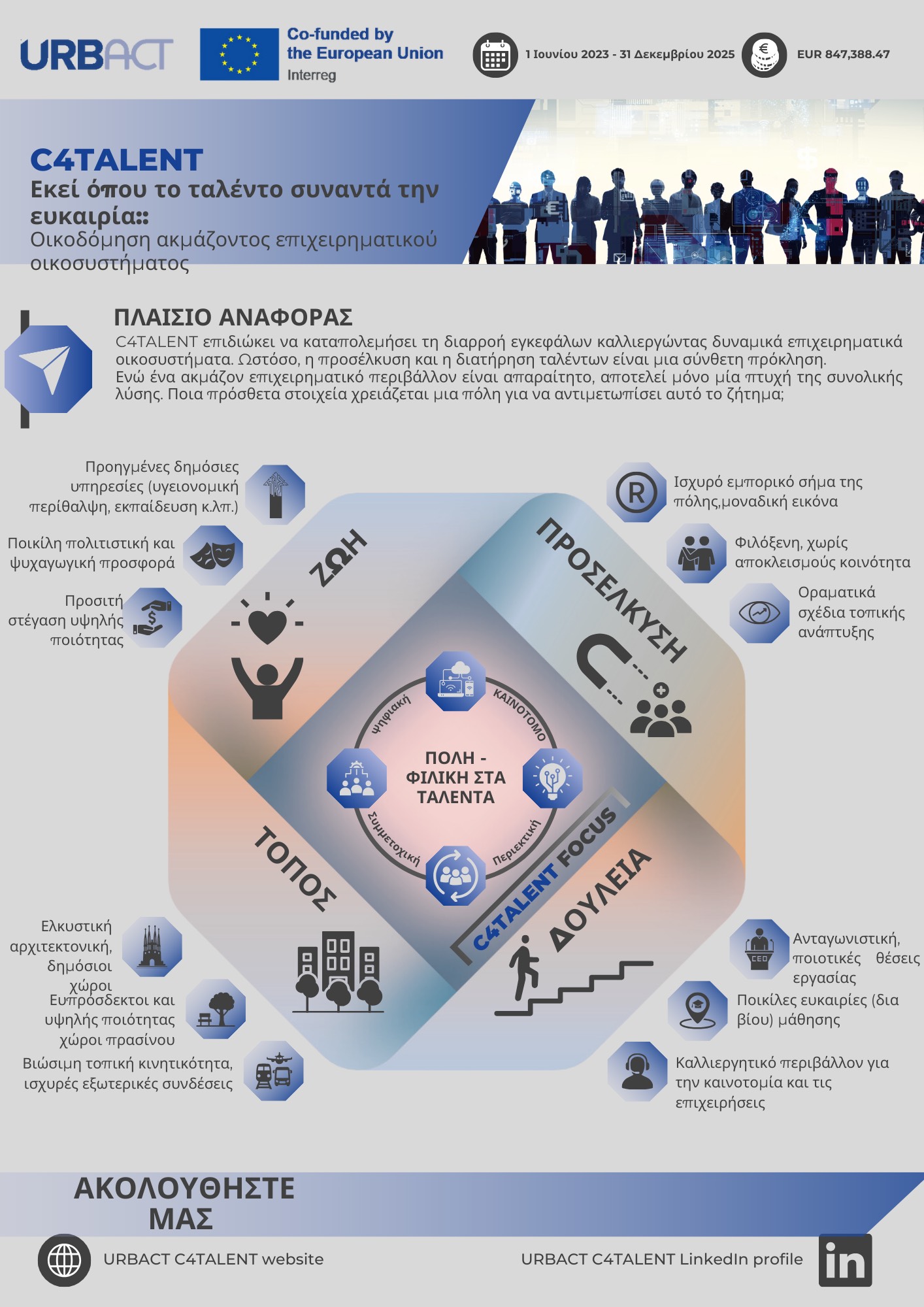 Προηγούμενο C4TALENT: Πρόοδος του έργου για την διακράτηση ταλαντούχου εργατικού δυναμικού της πόλης μας… στην πόλη μας! Επόμενο Πρόσκληση σε Ημερίδα “Πράσινες πόλεις του αύριο: Κινητικότητα, Υδάτινοι πόροι και Ανακύκλωση”